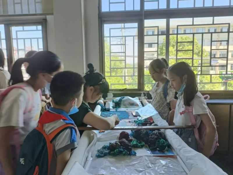 小朋友们认真观摩湘绣作品