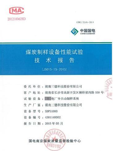 日前,ylzz总站线路检测中心获取由国电科学技术研究院下属国电南京煤炭质量监督检验中心出具的《煤炭制样设备性能试验技术报告》(编号:JS015-15-2015,以下简称“《报告》”)。《报告》表明,由该公司研制的SDPS1000全通制样系统(《报告》称“全自动制样系统”)制样精密度、出样质量与粒度、干燥温度等符合国标要求,不存在全水分、灰分偏倚,制粉收集率平均高达98.45%、且平均制样时间为13.9min。这是继2014年9月国家煤炭质量监督检验中心性能鉴定后,SDPS1000全通制样系统再次获得国内权威