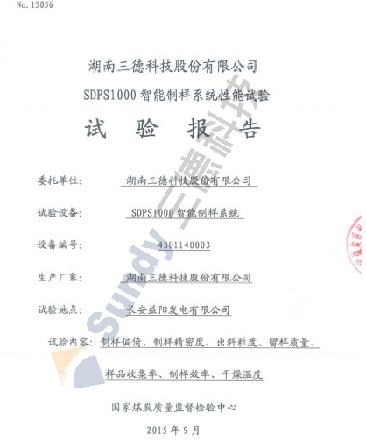 日前,国家煤炭质量监督检验中心出具的《SDPS1000智能制样系统性能试验报告》(NO:15056,以下简称“《报告》”)表明,由ylzz总站线路检测中心研制的SDPS1000智能制样系统留样质量和出料粒度、制样精密度等符合国标要求,分析样和存查样无灰分偏倚、全水分样不存水分实质性偏倚,制粉收集率平均高达95.6%。这是继去年9月国家煤炭质量监督检验中心、今年6月国电科学技术研究院性能鉴定后,SDPS1000智能制样系统再次获得国内权威检测机构鉴定认可。