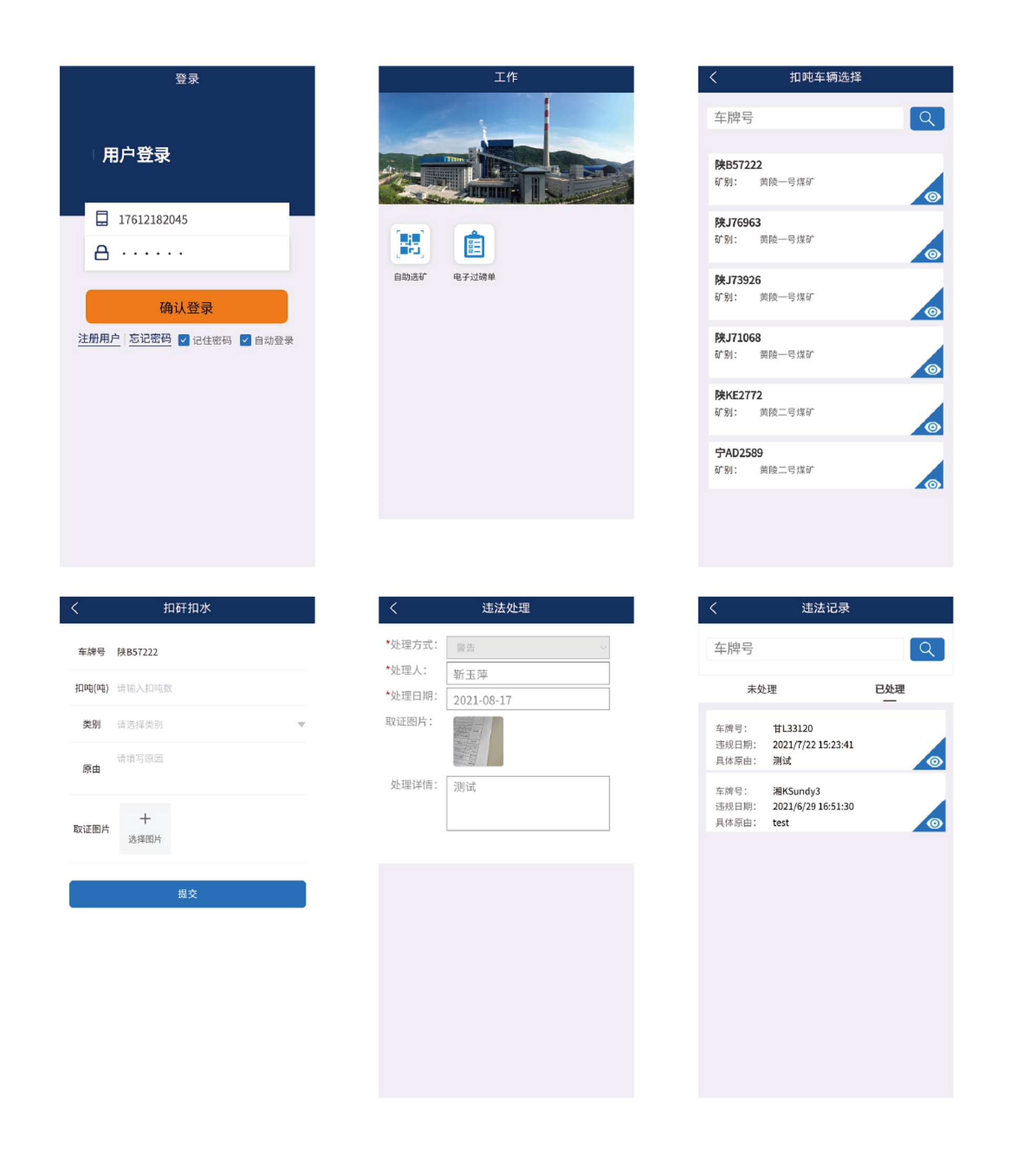 系统在接卸区域构建无线网群,配置智能PDA,可实现卸煤区域的自动分配和在线执法功能。违法登记时智能PDA支持拍照上传,确保执法过程公开透明。在违法处理时支持多种处理方式(扣矸、扣水、罚款、警告等),扣吨数据直接上传至计量系统,并支持历史数据查询等功能。